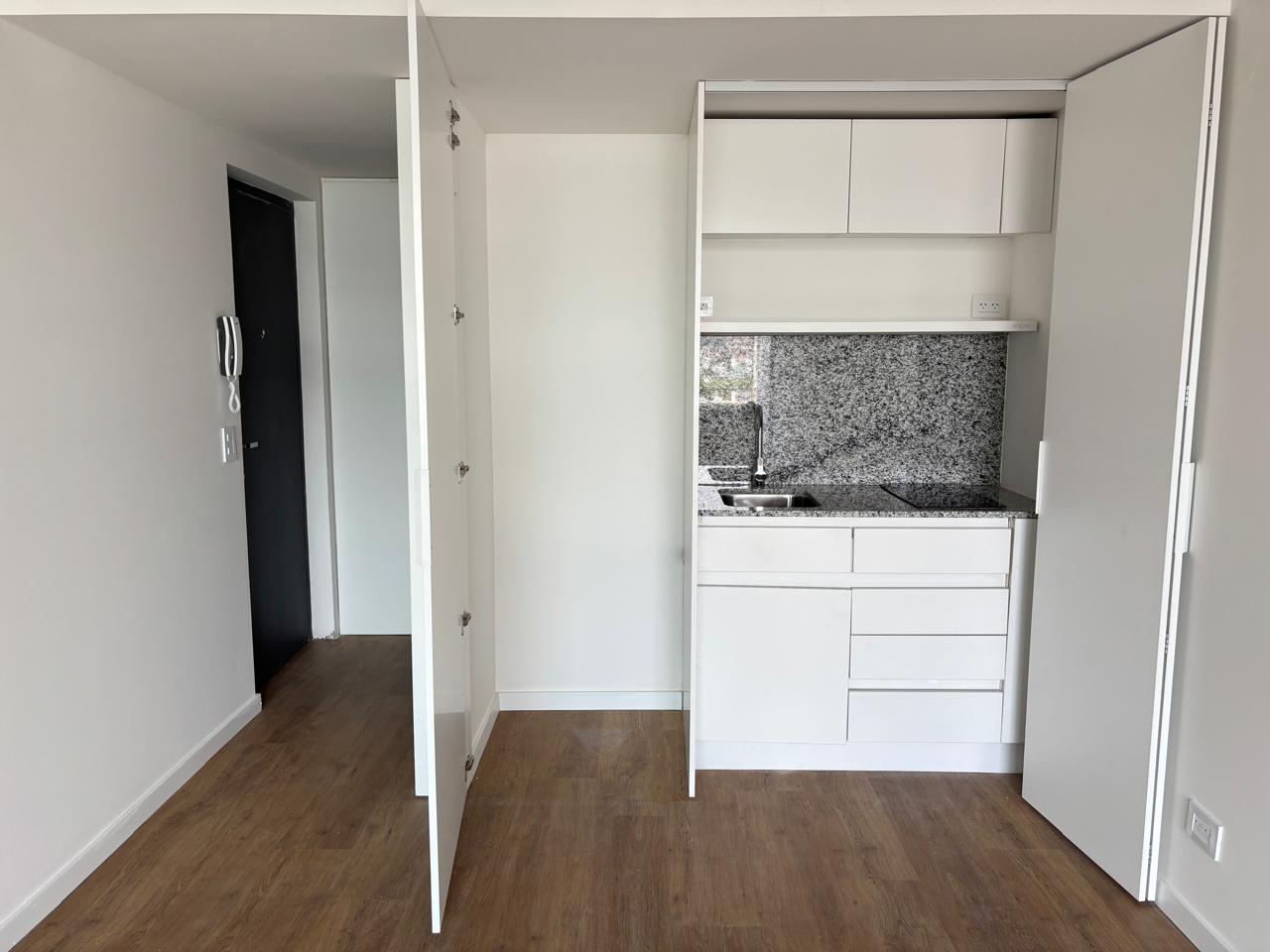 Departamento venta ubicado en un piso 5 al frente, externo con balcón orientado al Norte con vista completamente despejada. Ambiente único con cocina integrada, espacio cubierto para lavarropas y baño con habitáculo.